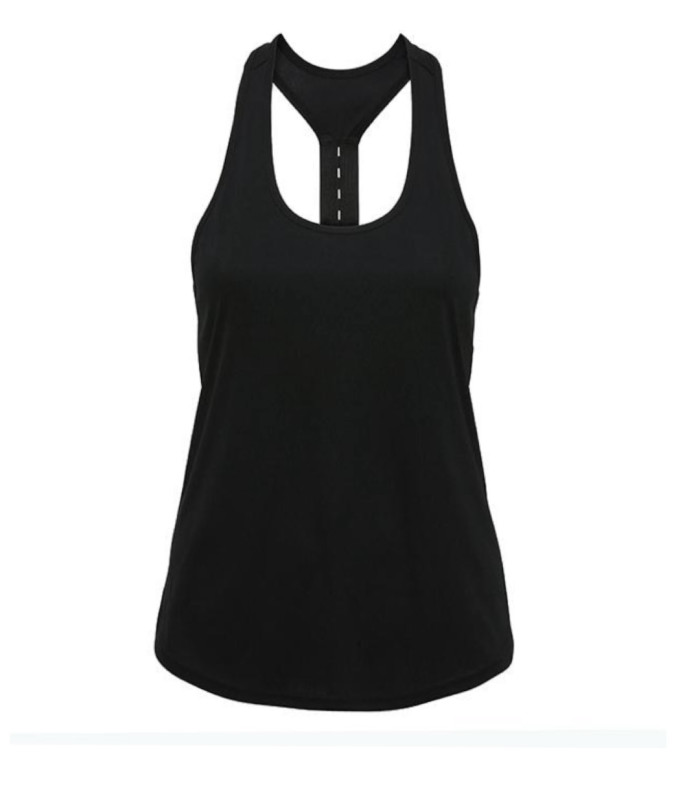 Yogatopp i med fukttransporterande egenskaper som håller dig sval och bekväm under träningen. Feminin passform med dekorativ konstrastfärgade smala band i rygg.