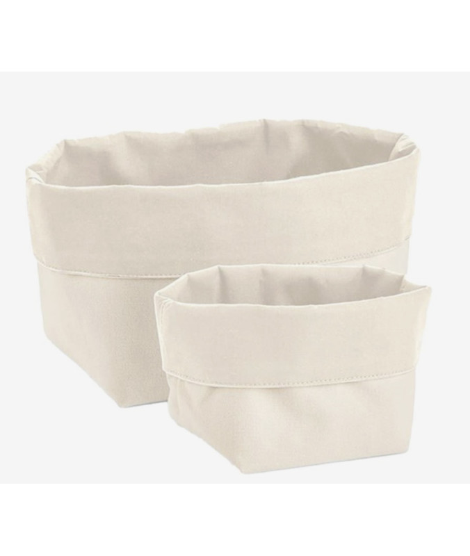 I bomullscanvas som är helt vändbara. Passar som tex förvaring, brödkorg eller varför inte en blomma.