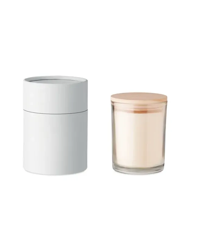 Vaniljdoftande vaxljus i glas med bambulock. Kommer i en presentförpackning av pappersrör. Låt huset lukta gott med det här vanilj doftljuset. Bränntid: 40 timmar.